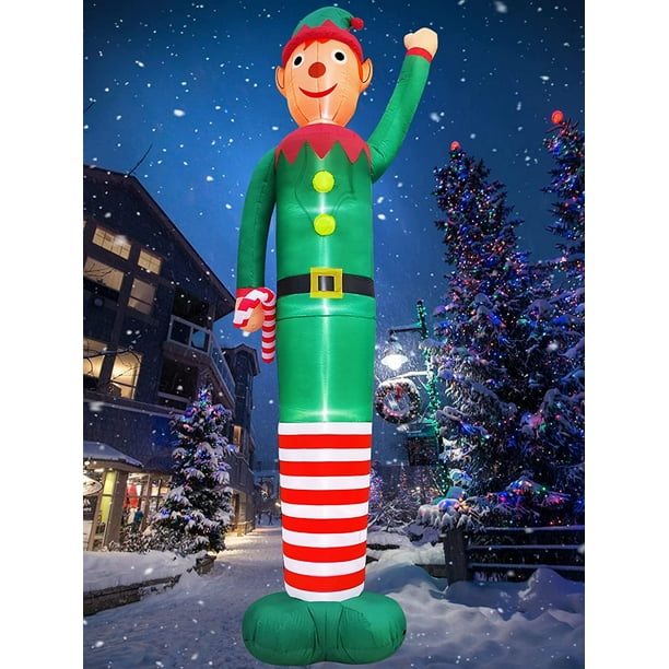 Homeexpress 12 Foot Giant Christmas Inflatable Elf Christmas Decoration Outdoor Blow Up Elf Holds Candy Cane With Tethers Stakes Led Lighted Holiday Xmas Decoration Outside Walmart Com